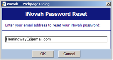 will find the username associated with the email address entered. iNovah will then generate a unique password